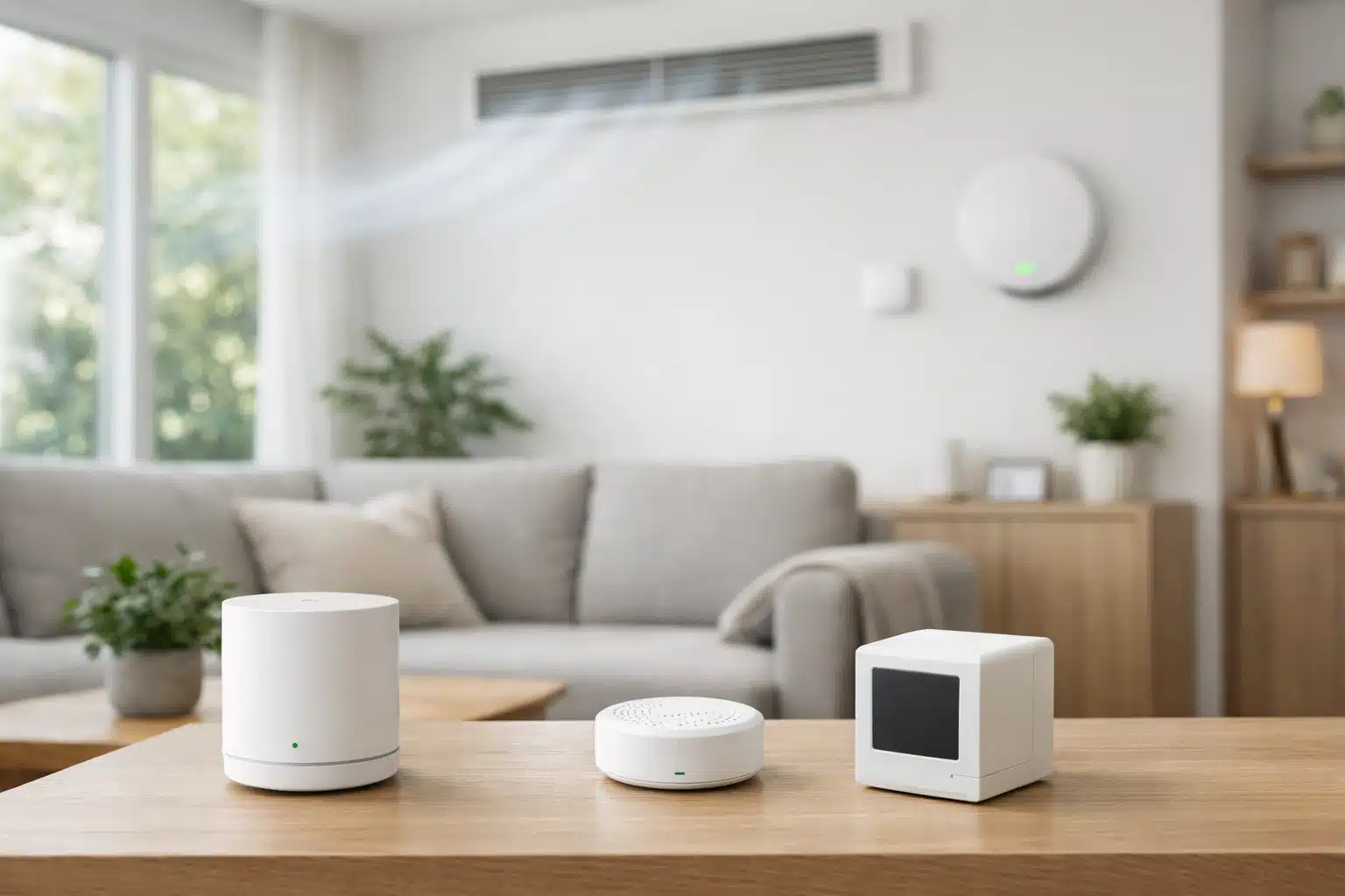 Des capteurs connectés permettent de mesurer en continu les principaux indicateurs de qualité d’air : CO2, COV totaux, particules fines, température et humidité. Ces dispositifs fournissent des données objectives et exploitables pour piloter intelligemment la ventilation et identifier les problèmes. Certains systèmes avancés peuvent même commander automatiquement l’augmentation du débit de ventilation lorsqu’un seuil de pollution est franchi.